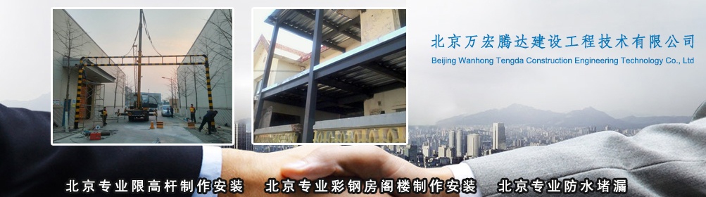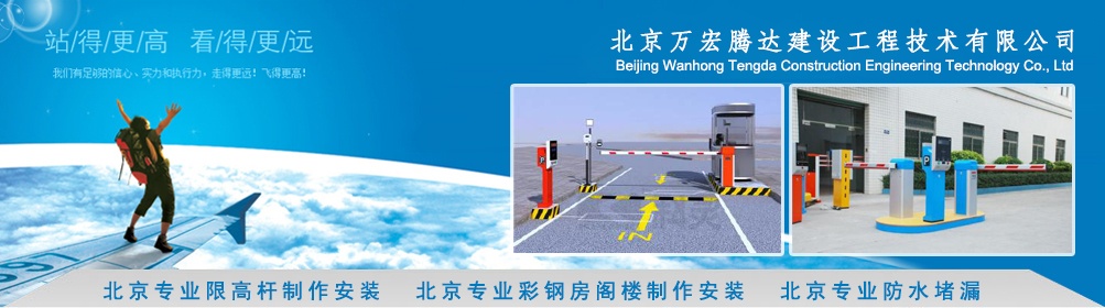 歡迎各界朋友,歡迎您訪問北京萬宏騰達建設工程技術有限公司網站(www.bjwhdjz_com.zhongxiyun.cn),北京萬宏騰達建設工程技術有限公司專業從事高中低檔限高桿制作安裝,專業承接工程、家庭學校醫院彩鋼房閣樓制作安裝,專業防水堵漏,專業劃車位線,24小時咨詢電話:1367125  更多